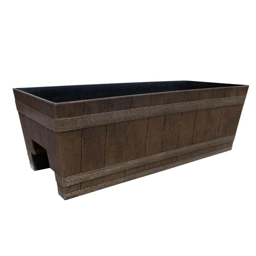 Deck Rail Planter Whiskey Barrel Walnut Finish 24 In Resin Outdoor Plant Pot Ebay